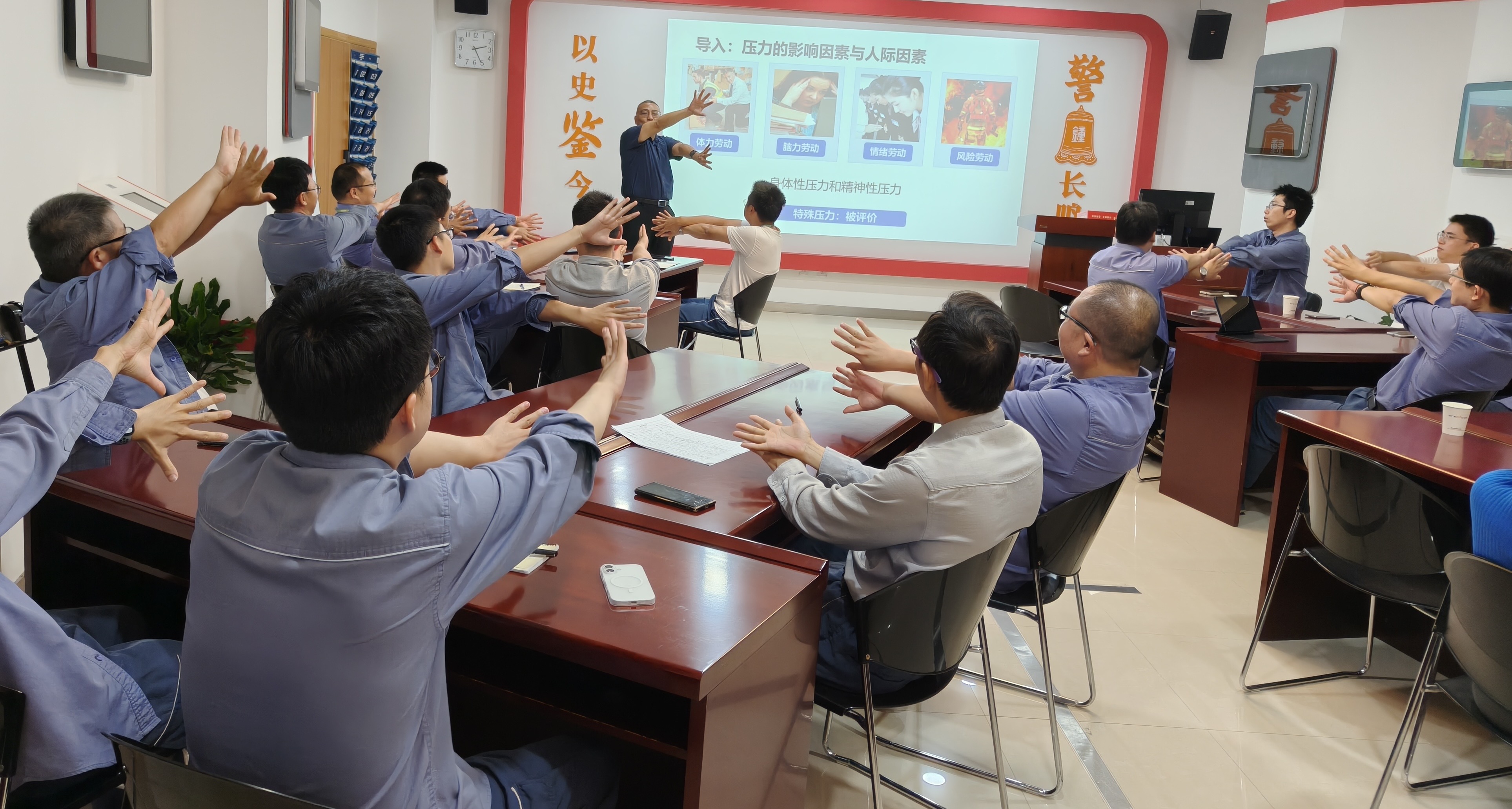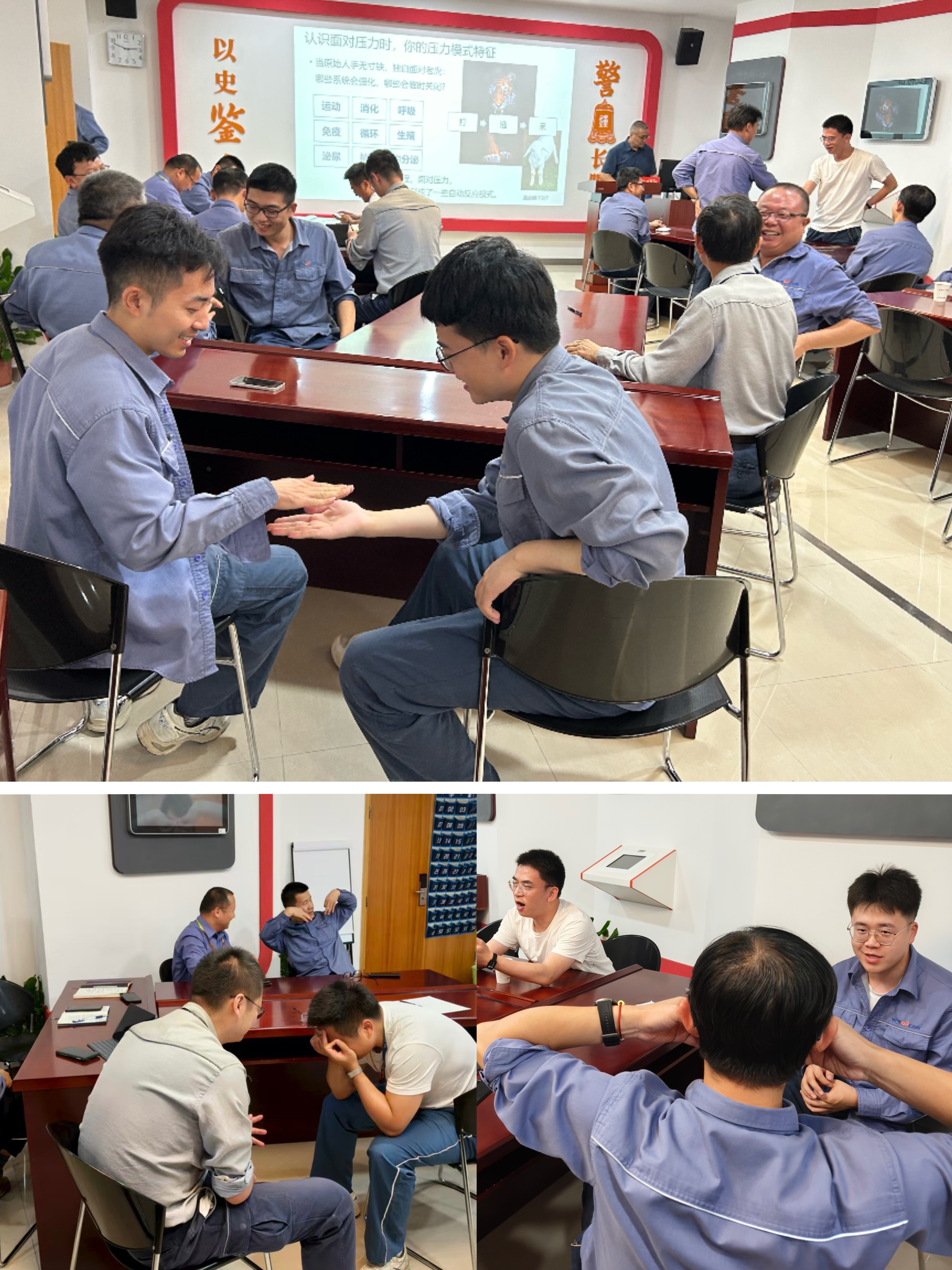 课程中,学员们通过分组游戏模拟不同工作压力场景,亲身体验在压力状态下的本能反应。老师以轻松有趣的方式引导大家,在互动中学习如何“拒绝工具人化”,掌握有效沟通的技巧。在培训后半程的“正念减压”环节,胡老师带领学员学习“觉知压力、转换压力、消除压力反应”的科学方法,帮助大家实现身心放松,成为学员们充电赋能的重要时刻。