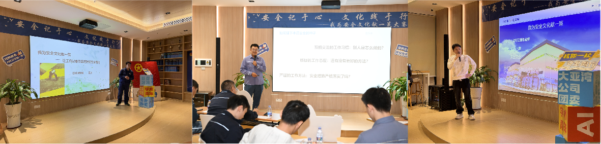 技术团支部覃帅作为刚入职的新员工,《让工作记录仪这道防线完全落地》主题演讲从新人角度出发,直面实践中的痛点,借鉴拇指相机、口袋相机的成功经验,建议使用更便携的设备,使得记录仪能够更有效地发挥其作用;安监团支部邵昱博《为青年员工埋下本质安全的种子》以安全“是什么?为什么?怎么办?”三问入手,阐述自身见解,埋下本质安全的种子需严谨的工作方法、质疑的工作态度、互相交流的工作习惯,只有在当下为青年员工埋下本质安全的种子才能在日后结满核安全文化的累累硕果;运行三部四值团支部朱金桥《泵出心声,泵出安全》脱口秀,通过生动的现场细节,点出了泵站噪音影响沟通、恶劣天气下外围工作等实际痛点,通过幽默风趣的方式道出一线的真切感受,也提出了使用降噪耳机、智能巡检等“人防+物防”的务实改进方向,把青年人对本质安全的追求落到了具体应用场景里。